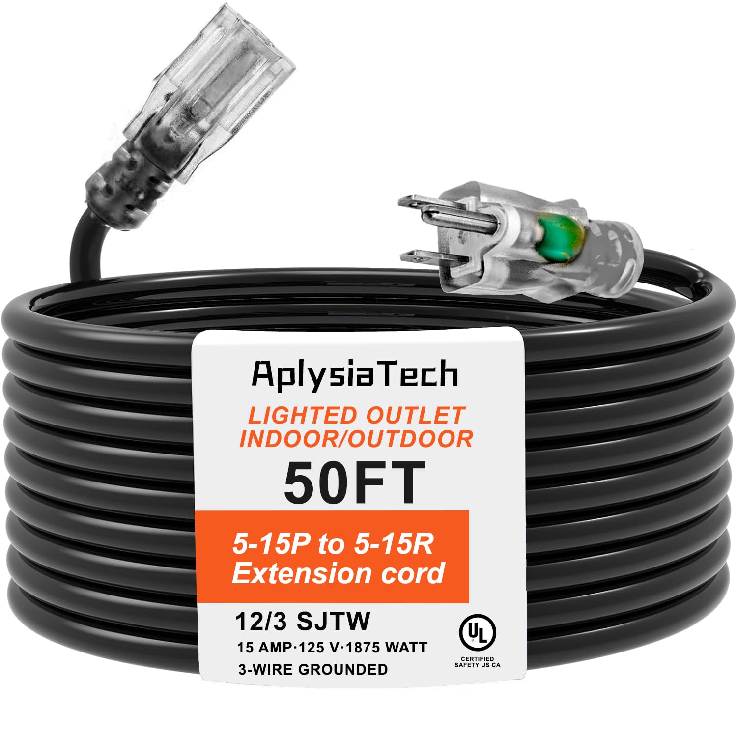 AplysiaTech 50 Foot Black Outdoor Lighted Extension Cord